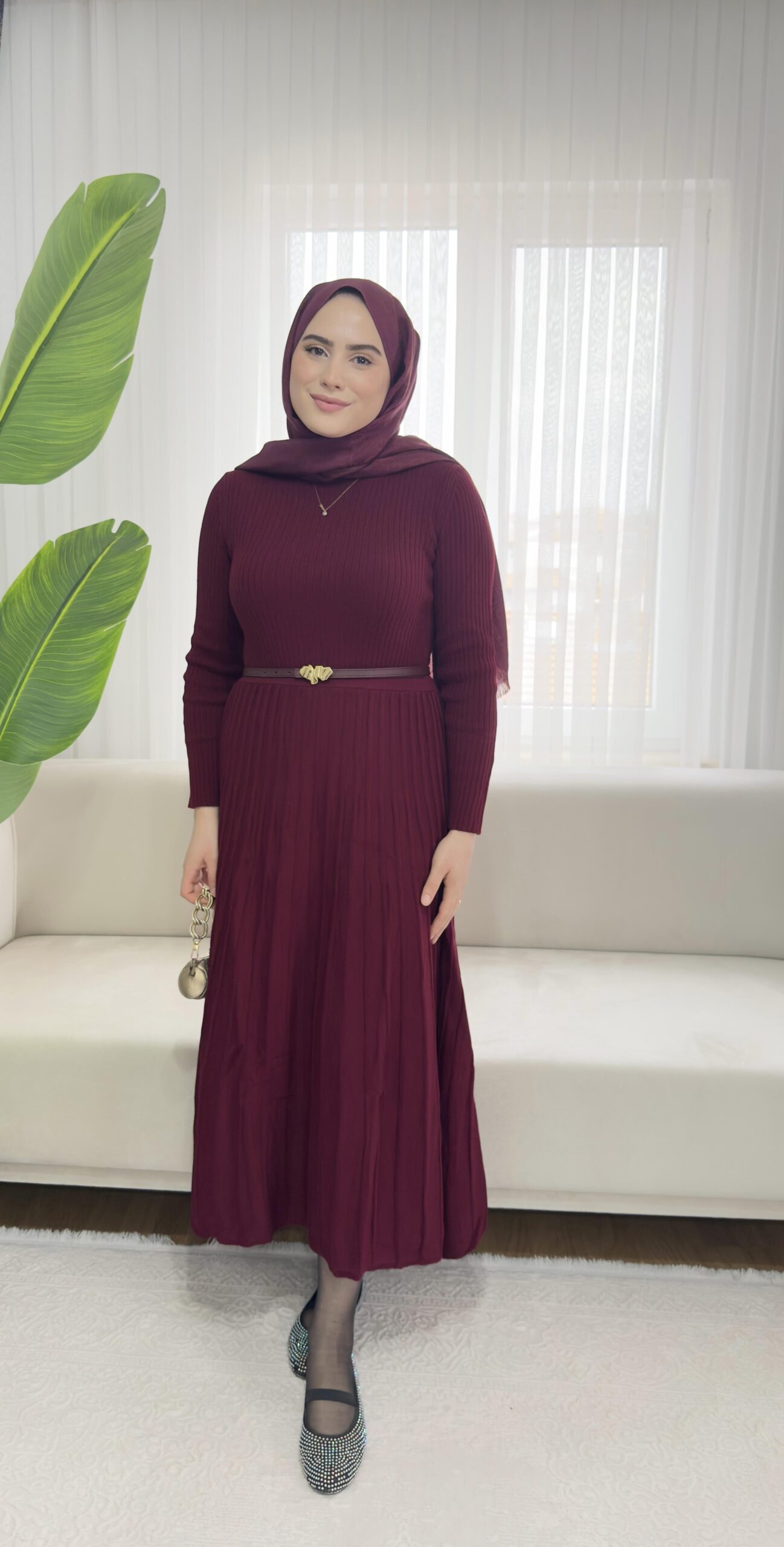 Kapüşonlu Taşlı Triko Takım | Bordo