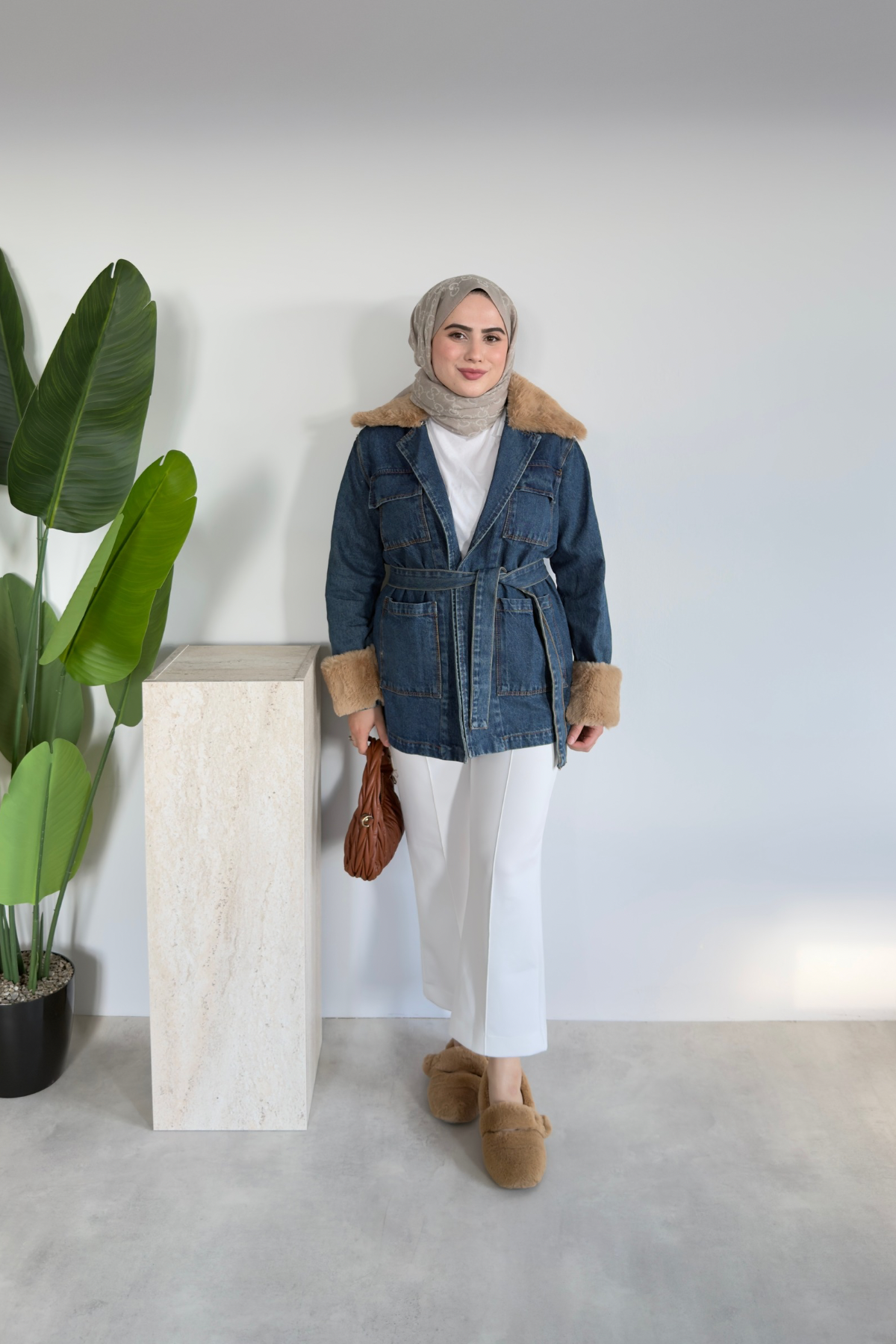 Kürk Detay Kot Ceket- Koyu | Mavi