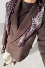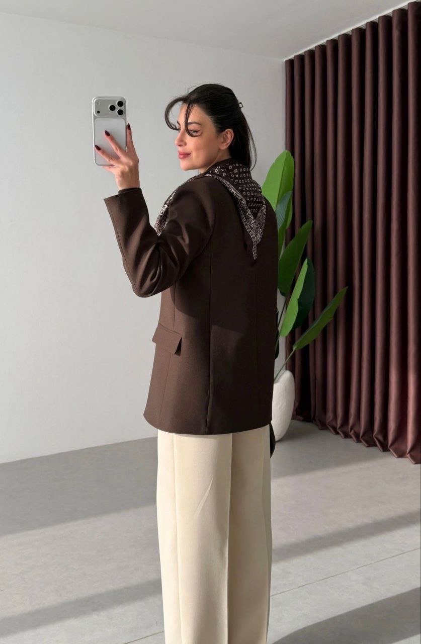 Premium Yakası Fularlı Blazer Ceket – Kahve