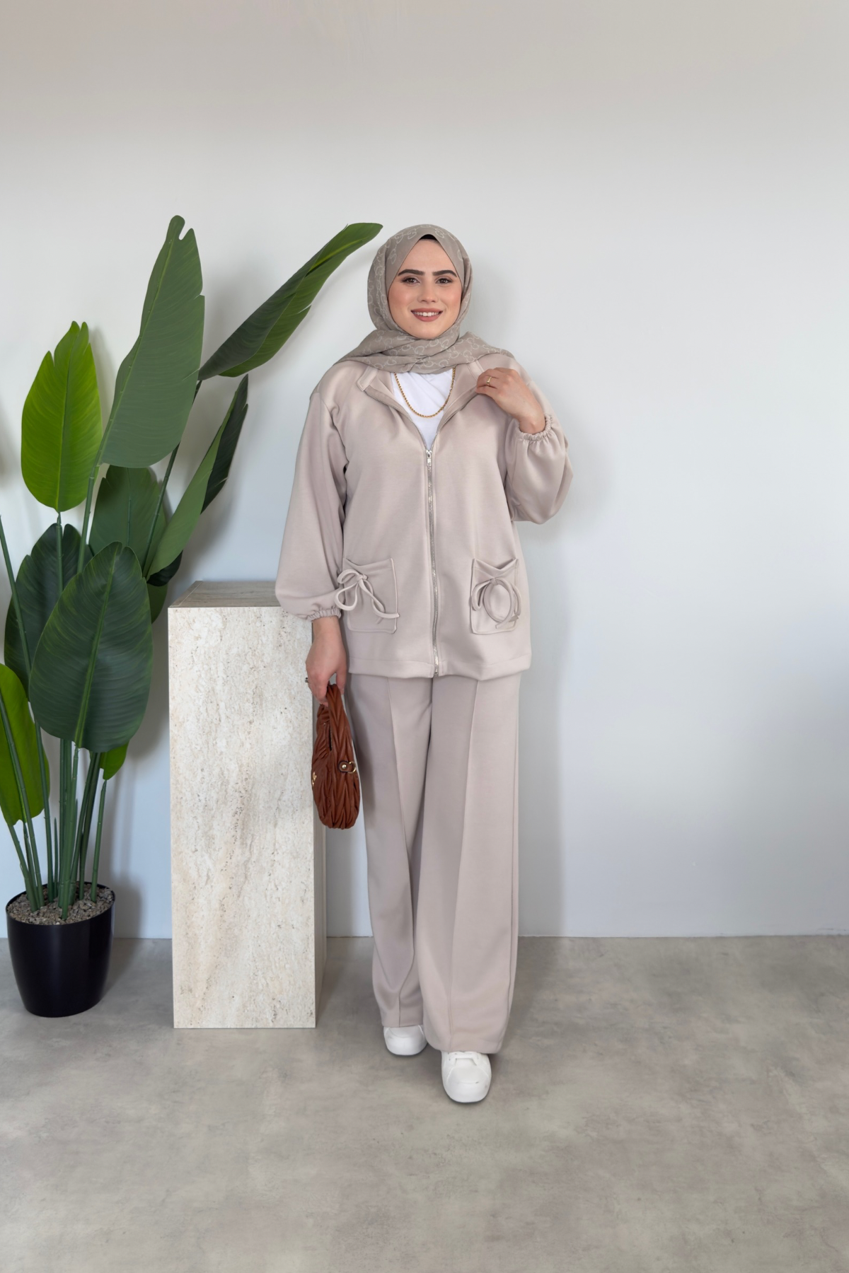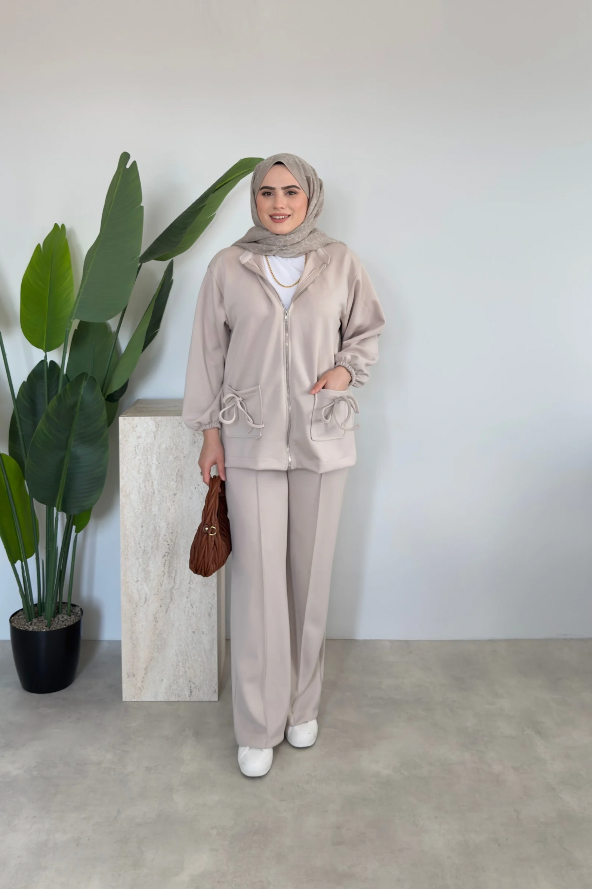 Fiyonk Detaylı Oysho Takım – Bej