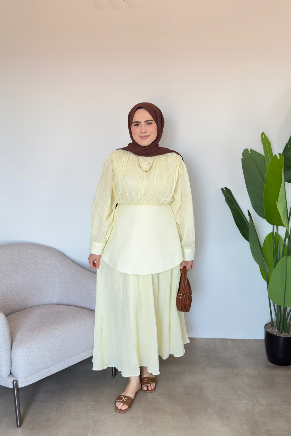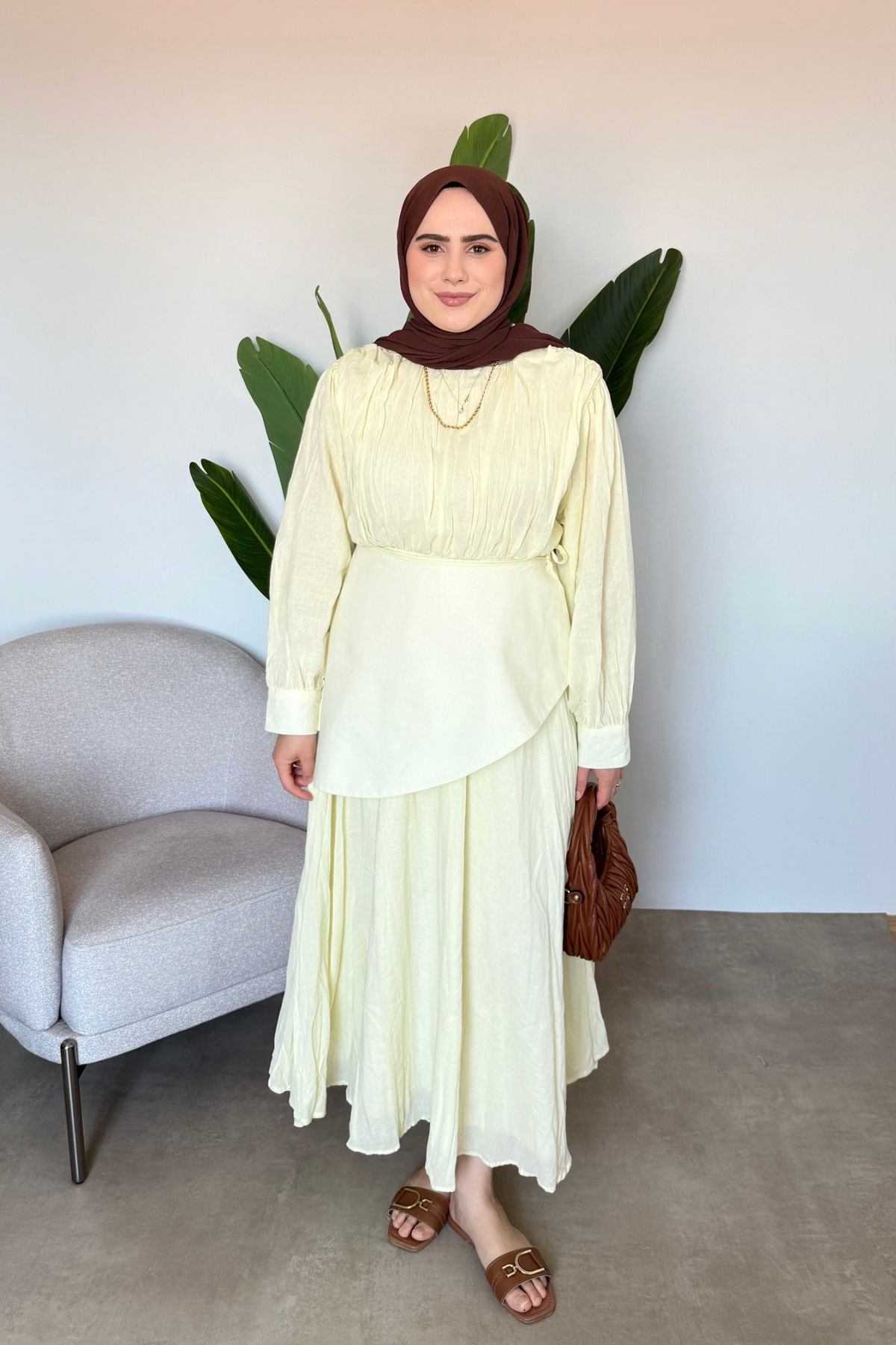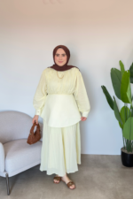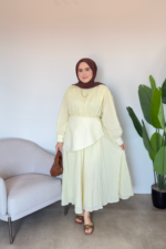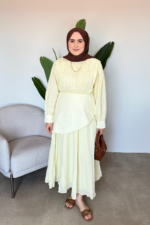 Ana Sayfa Yeni Gelenler ELBİSE Bel Detaylı Vual Elbise | Sarı