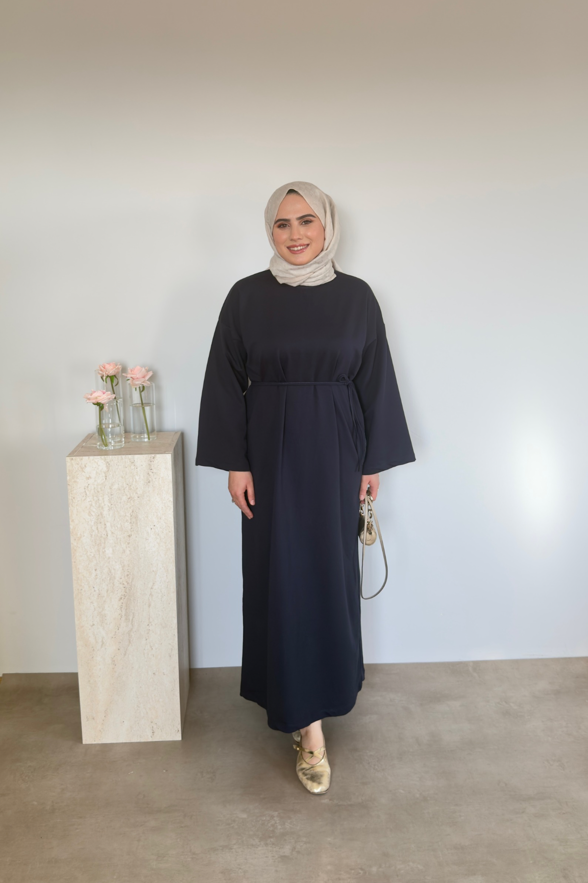 Bağlama Detaylı Elbise- Lacivert