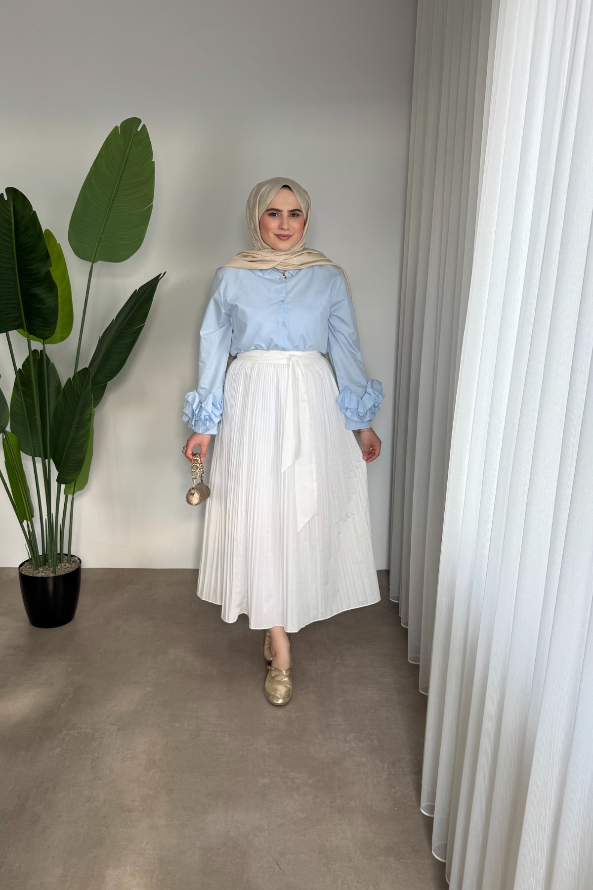 Kolu Taşlı Gömlek | Beyaz