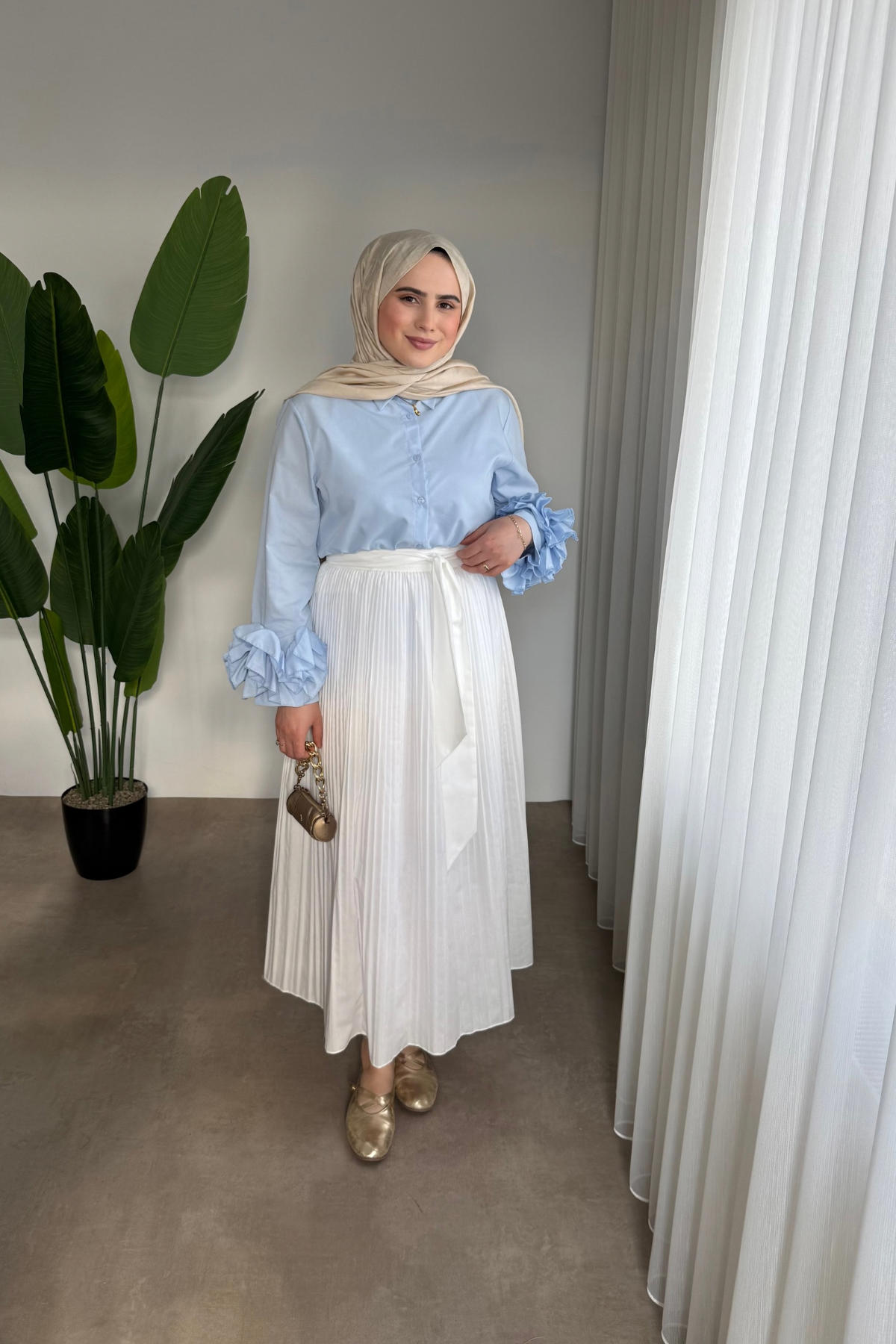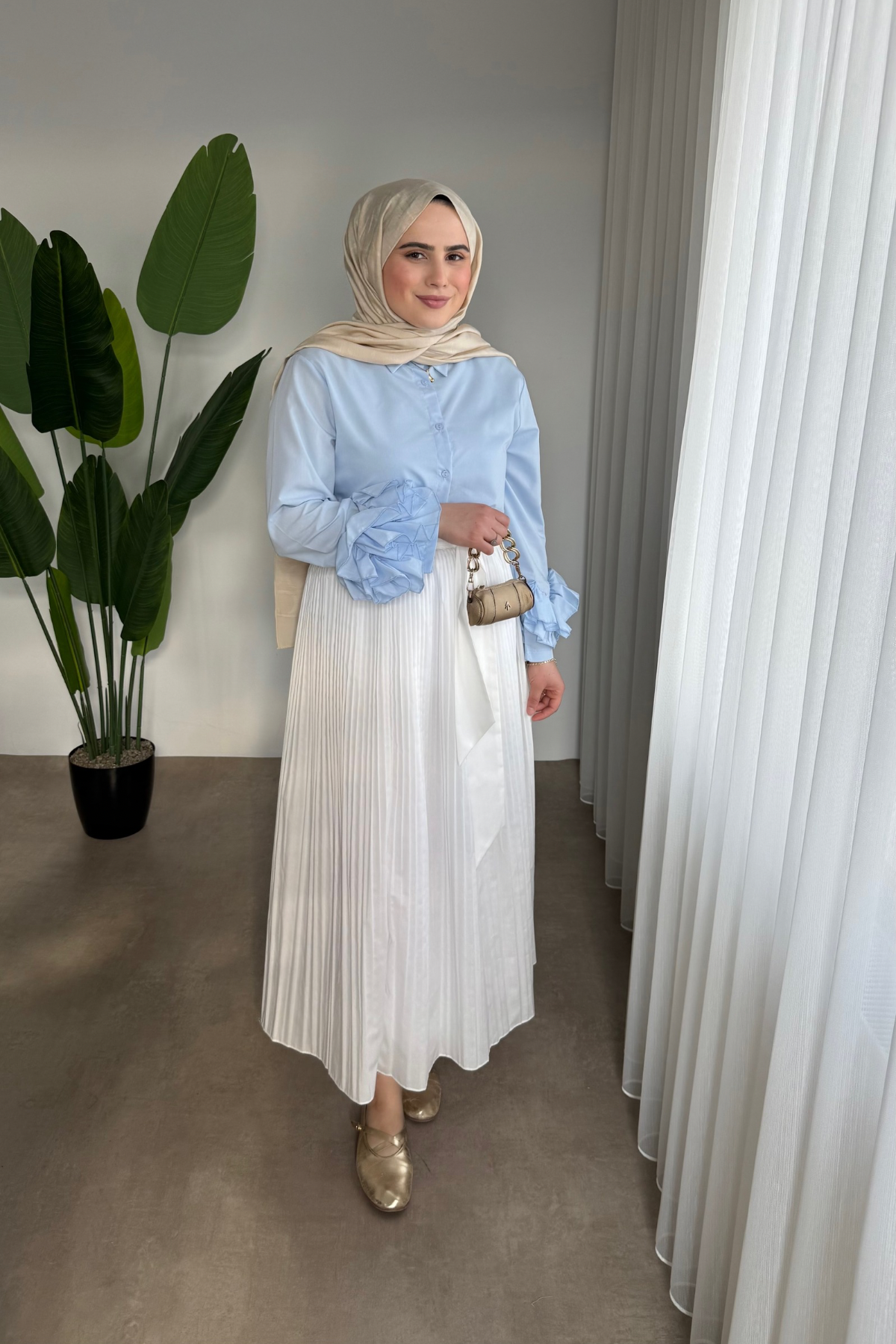 Kolu Taşlı Gömlek | Mavi