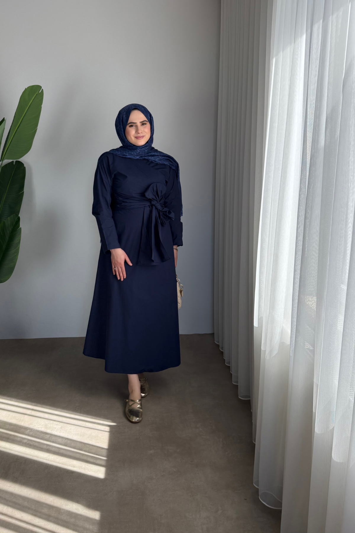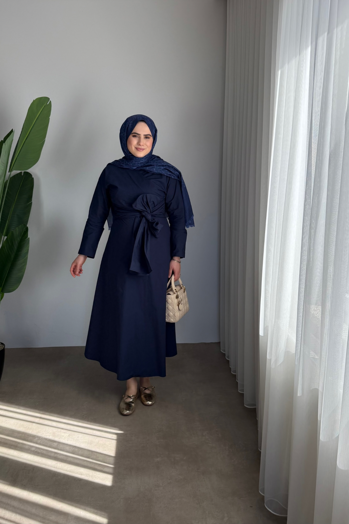 Ana Sayfa Yeni Gelenler ELBİSE Bağlama Detaylı Elbise | Lacivert