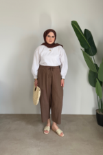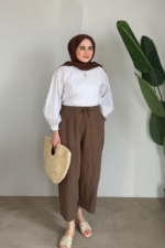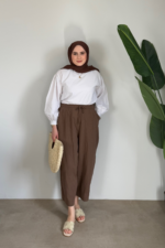 Keten Şalvar Pantolon | Kahve