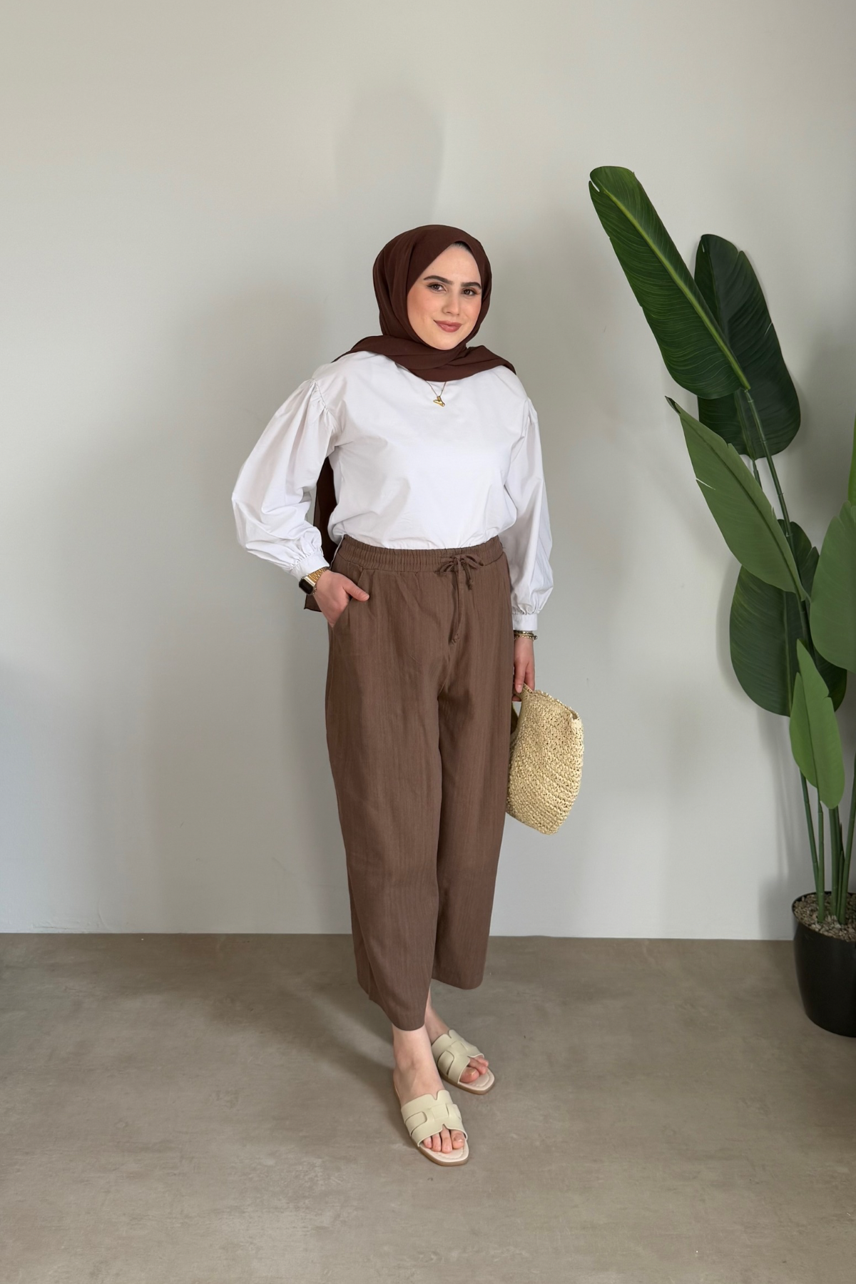 Keten Pantolon | Kahve
