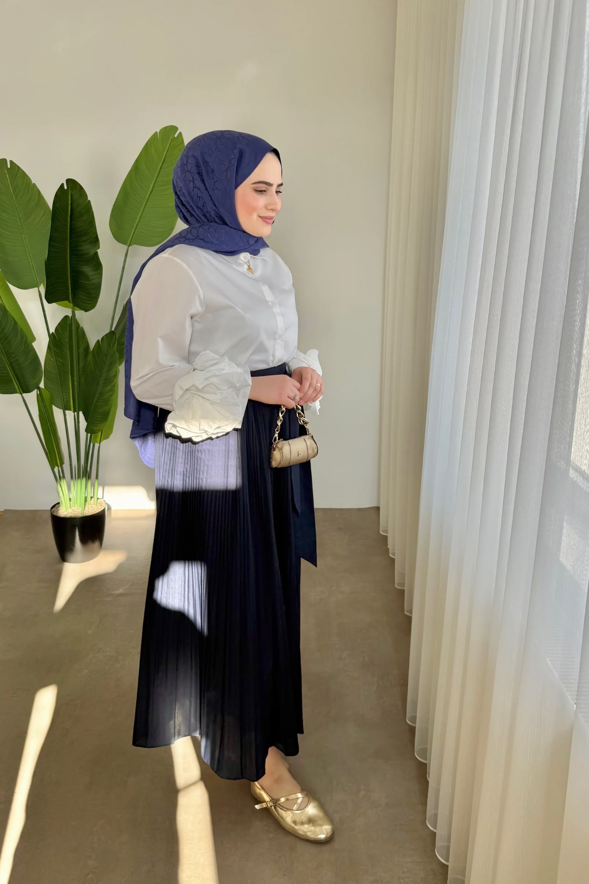 Krep Kumaş Çımalı Pantolon | Beyaz