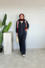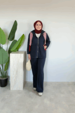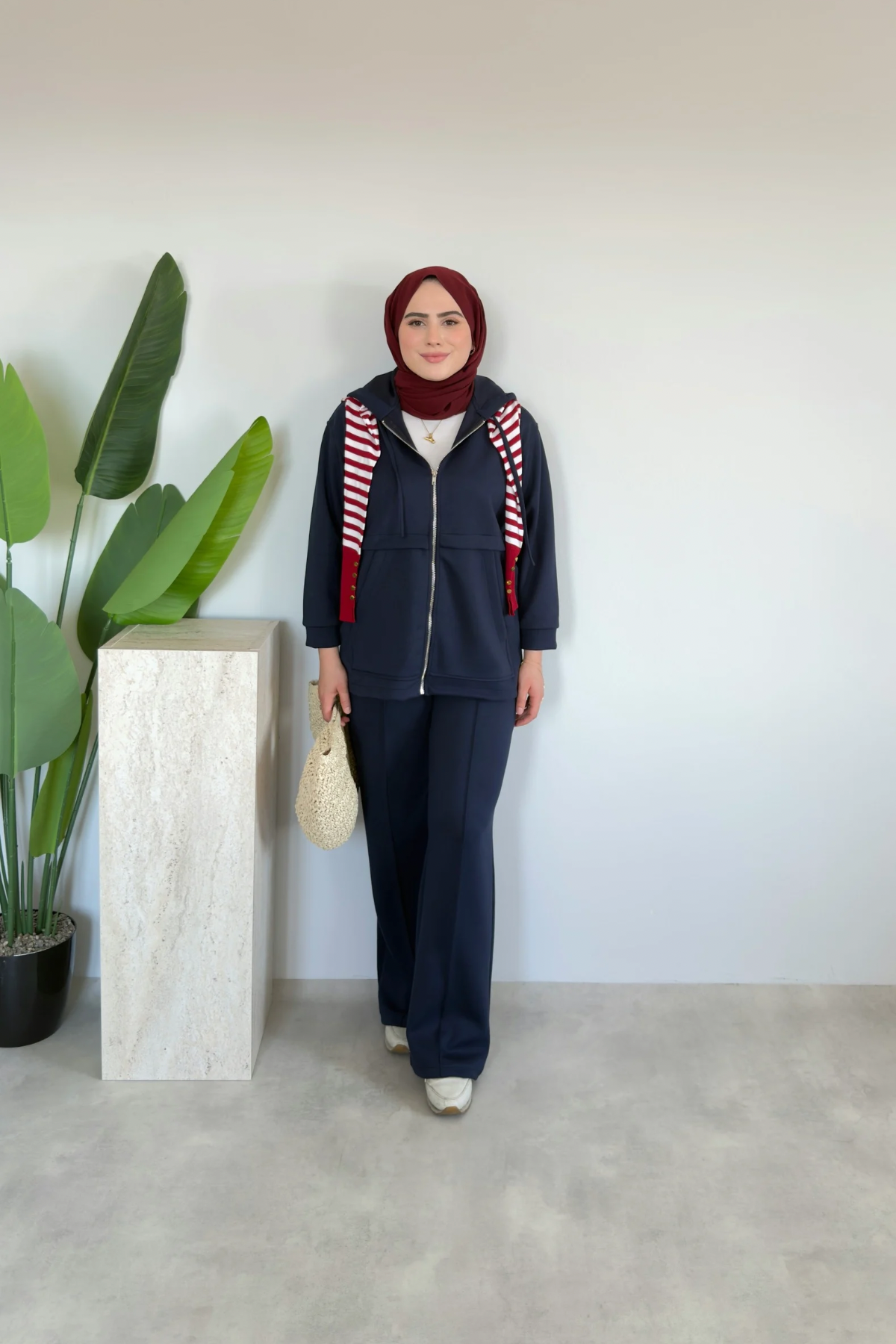 Kapüşonlu Taşlı Triko Takım- Lacivert