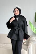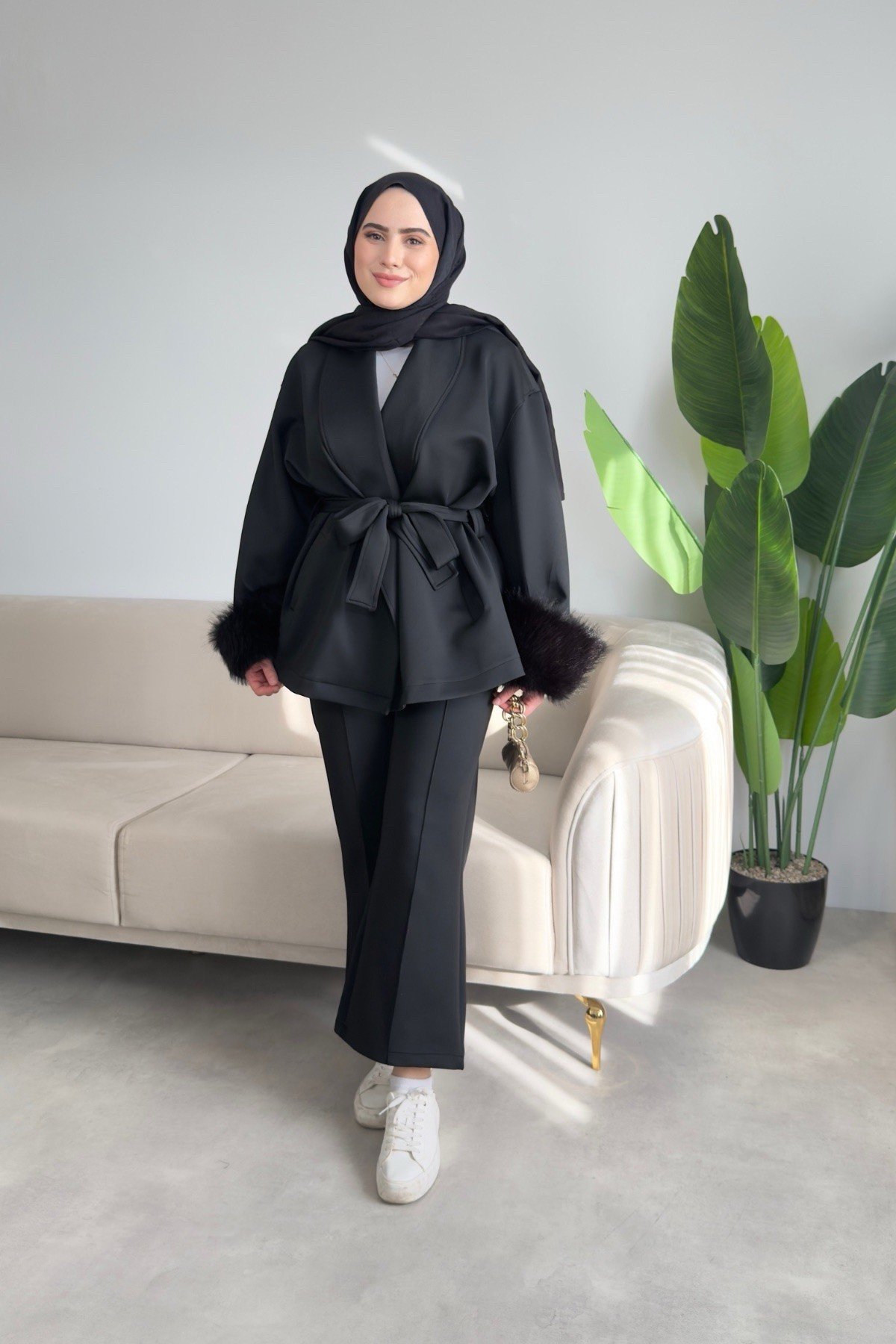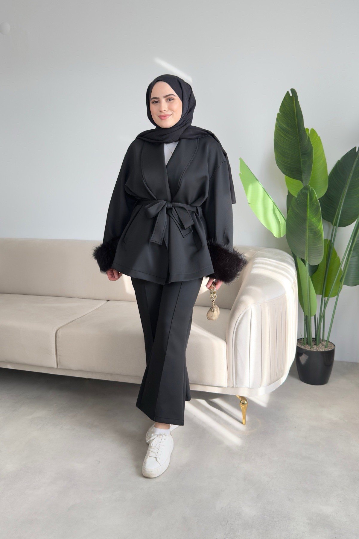 Ana Sayfa Yeni Gelenler TAKIM Pantolonlu Takım Kürk Detaylı Scuba Takım | Siyah