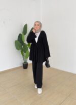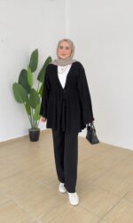 Ana Sayfa Yeni Gelenler TAKIM Pantolonlu Takım Triko Kimono Takım | Siyah