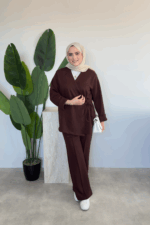 Kapüşonlu Taşlı Triko Takım- Bordo