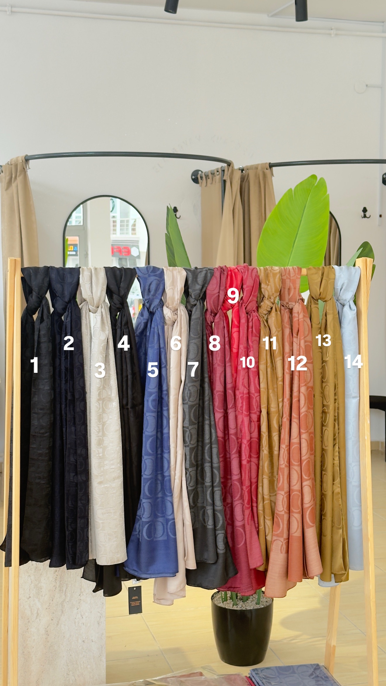 Görselde şalların üzerinde bulunan numaraları sipariş verirken notlar kısmına yazarak renk seçiminizi yapabilir, siparişinizi oluşturabilirsiniz.